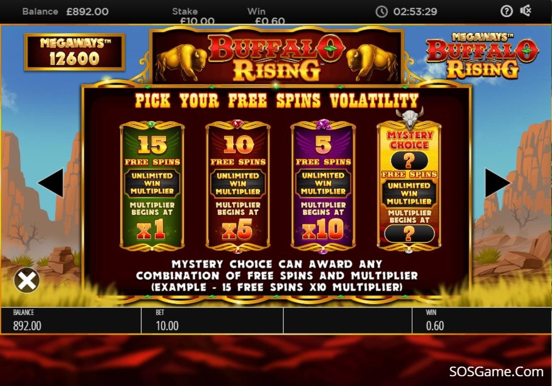 With an RTP of 96.5%, Buffalo Rising is at the sweet spot, because most video slots that wish to stay competitive circle around the same number. The number is not the most extreme I’ve ever seen, but it is nothing to scoff at as you have the potential for a massive payout with every spin of the reels.
