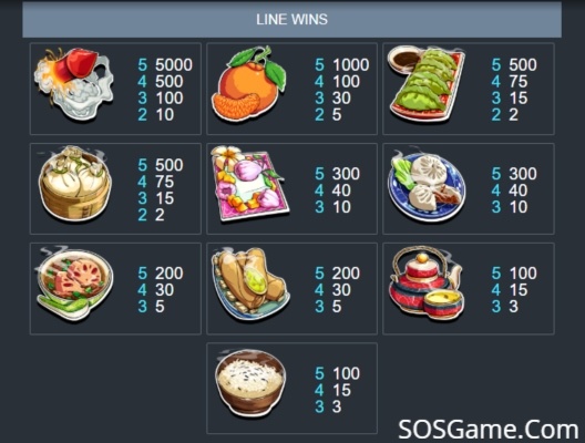 There are ten base symbols in this game, all of which are related to the topic. All of them are represented by different meals from the Asian cuisine, apart from the red rocket symbol that pays the most.