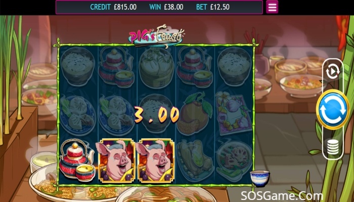 The Dumpling Pick bonus is triggered by landing at least three female pig Scatters. Three, four, or five Scatters will give you two, three, or five picks, respectively. Each pick can award 100x your current wager.