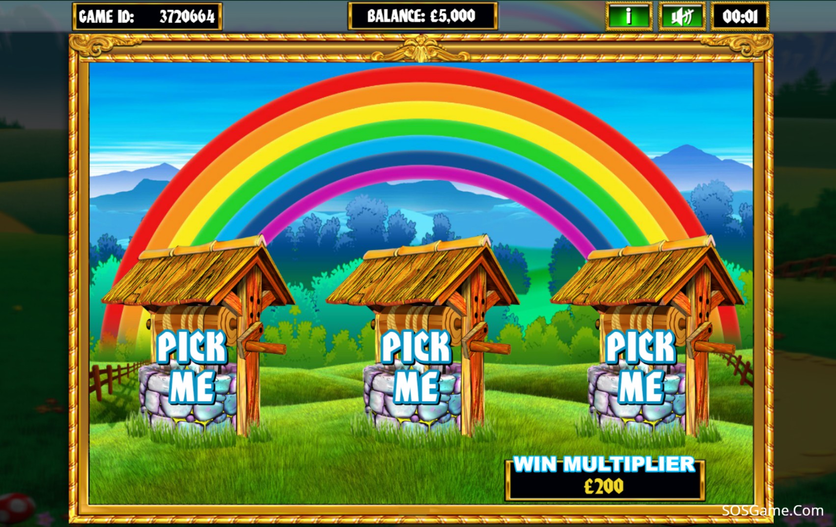 Slingo Rainbow Riches comes with an Irish theme. As such, the background is pretty much what you would expect from an Irish-themed video slot. The green fields expand as far as the eye can see and seep into the crystal-clear sky. The country road won’t take you home, but it leads to the end of a rainbow, and we all know what lies at the end of it. If you ever walk astray, the friendly leprechaun is there to make sure you find the pot of gold.