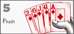 The Flush hand is the fifth highest paying hand combination that can be dealt out to you when you are playing Cyberstud Poker online, and if you do get this hand combination dealt out to you and the Dealer Qualifies then you are going to be paid out at odds on your Call part of your base wager of 9 to 1