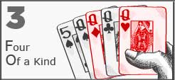 The Four of a Kind hand is the third highest paying hand combination that can be dealt out to you when you are playing Cyberstud Poker online, and if you do get this hand combination dealt out to you and the Dealer Qualifies then you are going to be paid out at odds on your Call part of your base wager of 99 to 1