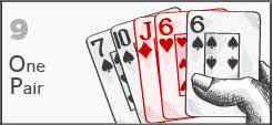 The One Pair hand is the ninth highest paying hand combination that can be dealt out to you when you are playing Cyberstud Poker online, and if you do get this hand combination dealt out to you and the Dealer Qualifies then you are going to be paid out at odds on your Call part of your base wager of 1 to 1.