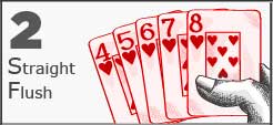 If you get dealt a Straight Flush hand when playing Cyberstud Poker then you have been dealt out the second highest paying hand available on this game, and will get a winning payout worth 199 to 1 based on the Call part of your original wager, this will be paid out only if the Dealer Qualifies when his card are revealed.