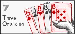 The Three of a Kind hand is the seventh highest paying hand combination that can be dealt out to you when you are playing Cyberstud Poker online, and if you do get this hand combination dealt out to you and the Dealer Qualifies then you are going to be paid out at odds on your Call part of your base wager of 3 to 1